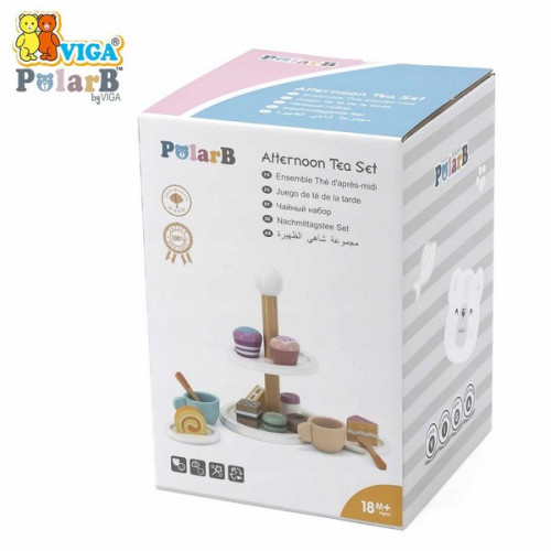 This wooden cake set is always ready to serve at afternoon teatime and will keep your little ones entertained for hours. Includes 9 cakes, 2 cups, 2 plates, 2 spoons and a 2-tier cake stand.