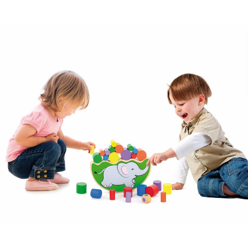 Wooden stacking elephant game develops motor skills, coordination, patience, and counting. Made of wood, size 14.7 x 10.8 x 4.1 cm.