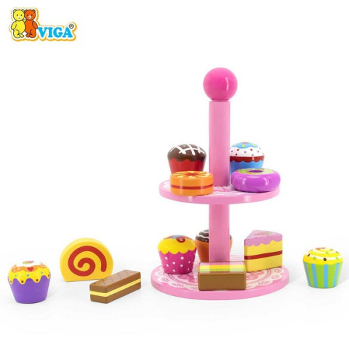 Includes 12 cakes and a 2-tier wooden stand. Realistic design, safe for small hands. Ideal for tea parties and role-playing.