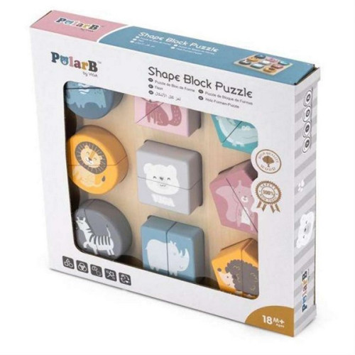 Viga's PolarB Shape Block Puzzle features pastel colors, fostering shape, size, and color learning. Dimensions: 21cm x 21cm x 3cm.