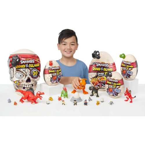 Smash your way to an epic prehistoric adventure with Smashers Dino Island Egg. SMASH your egg to smithereens to uncover the 10 hidden surprises inside this action-packed egg! Search through squishy sand and super stretchy slime for your Dino pieces!