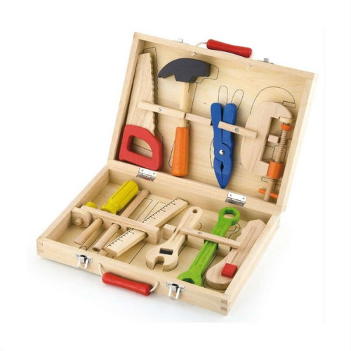 Solid 10-tool set for young handymen, indoor/outdoor play. Encourages creativity, meets toy safety standards. Dimensions: 29.0 x 21.0 x 5.5 cm.